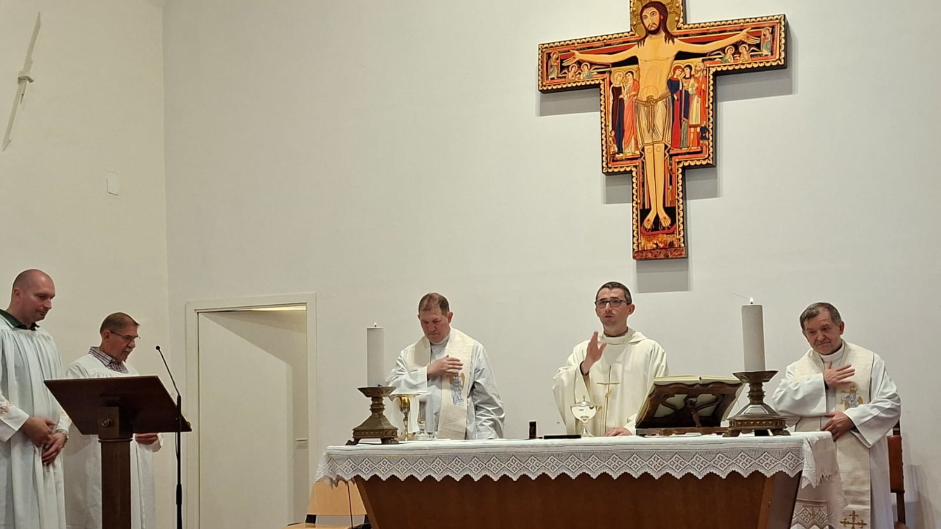 O godz. 14:00 została odprawiona Msza Święta w języku polskim, którą sprawował radca generalny, ks. Marcin Kałwik CSMA, w asyście sześciu kapłanów z Polski. On również, jako delegat Ojca Generała, przyjął ponowienie ślubów zakonnych przez brata Maksymiliana.