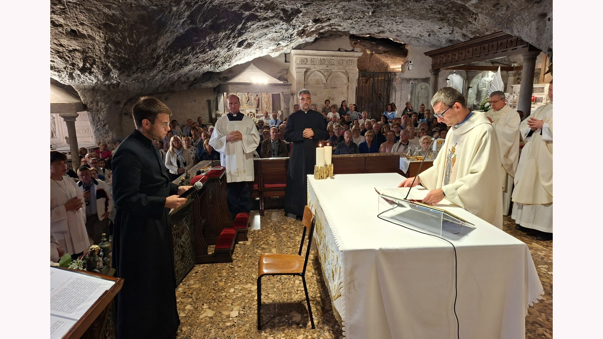 W samej Grocie uroczystej Mszy świętej odpustowej o godz. 11:00 przewodniczył kardynał Marcello Semeraro, Prefekt Dykasterii Spraw Kanonizacyjnych, który przybył na Gargano wraz z ks. Bogdanem Turkiem CSMA, michalitą pracującym od lat w tej Dykasterii.